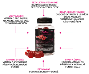 - FUNKČNÍ SUPEROVOCE Cílená kombinace superovoce a červené řepy – koncentrovaná v praktických gumových bonbonech