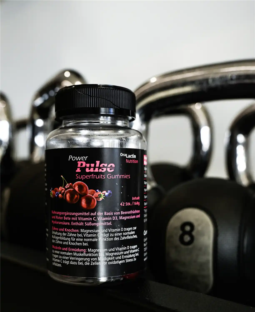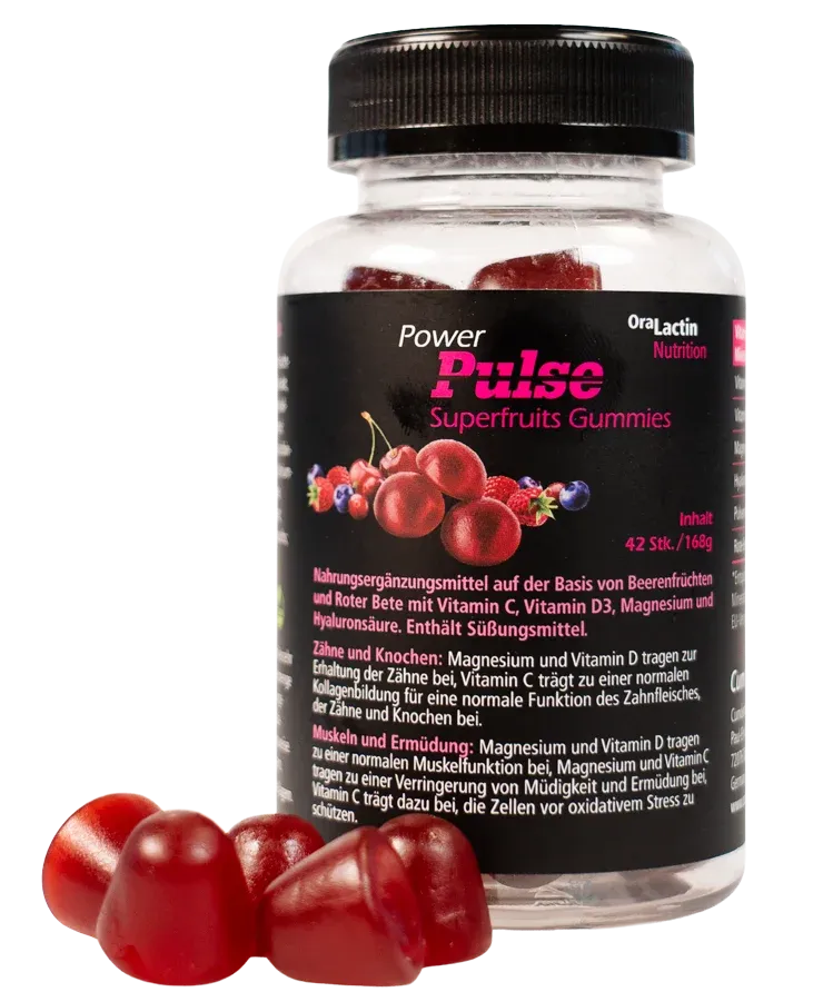 V několika gumových bonbonech kombinují to, na čem v každodenním životě záleží: pečlivě vybranou sílu superovoce a červené řepy, doplněnou vitamínem C, vitamínem D3, hořčíkem a kyselinou hyaluronovou. Receptura je navržena tak, aby podporovala zdraví ústní dutiny a mikrobiom a přispívala k každodenní pohodě. Vitamíny a minerály přispívají k normální funkci imunitního systému, svalů a regeneraci. Ovocná chuť, příjemně měkké, bez cukru a želatiny – ideální pro každého, kdo chce spojit požitek s uvědomělou výživou.