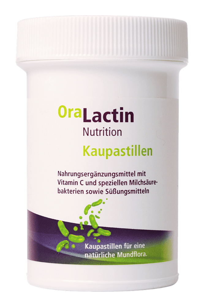 Žvýkací pastilky OraLactin pro každodenní péči o zuby a ústní dutinu. Chutné žvýkací pastilky svými vysoce kvalitními probiotickými složkami chrání před zubním kazem a parodontózou, obnovují rovnováhu zdravé ústní flóry a posilují přirozené obranné mechanismy v ústech. Žvýkací pastilky OraLactin chrání před zápachem z úst a podporují redukci plaku a zánětu dásní.